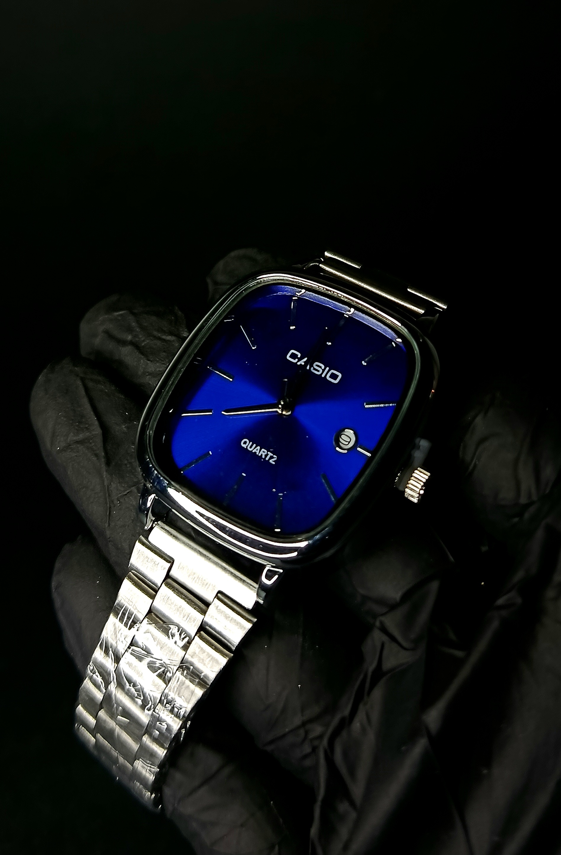 ساعت کاسیو اولدمانی آبی بند نقره ای