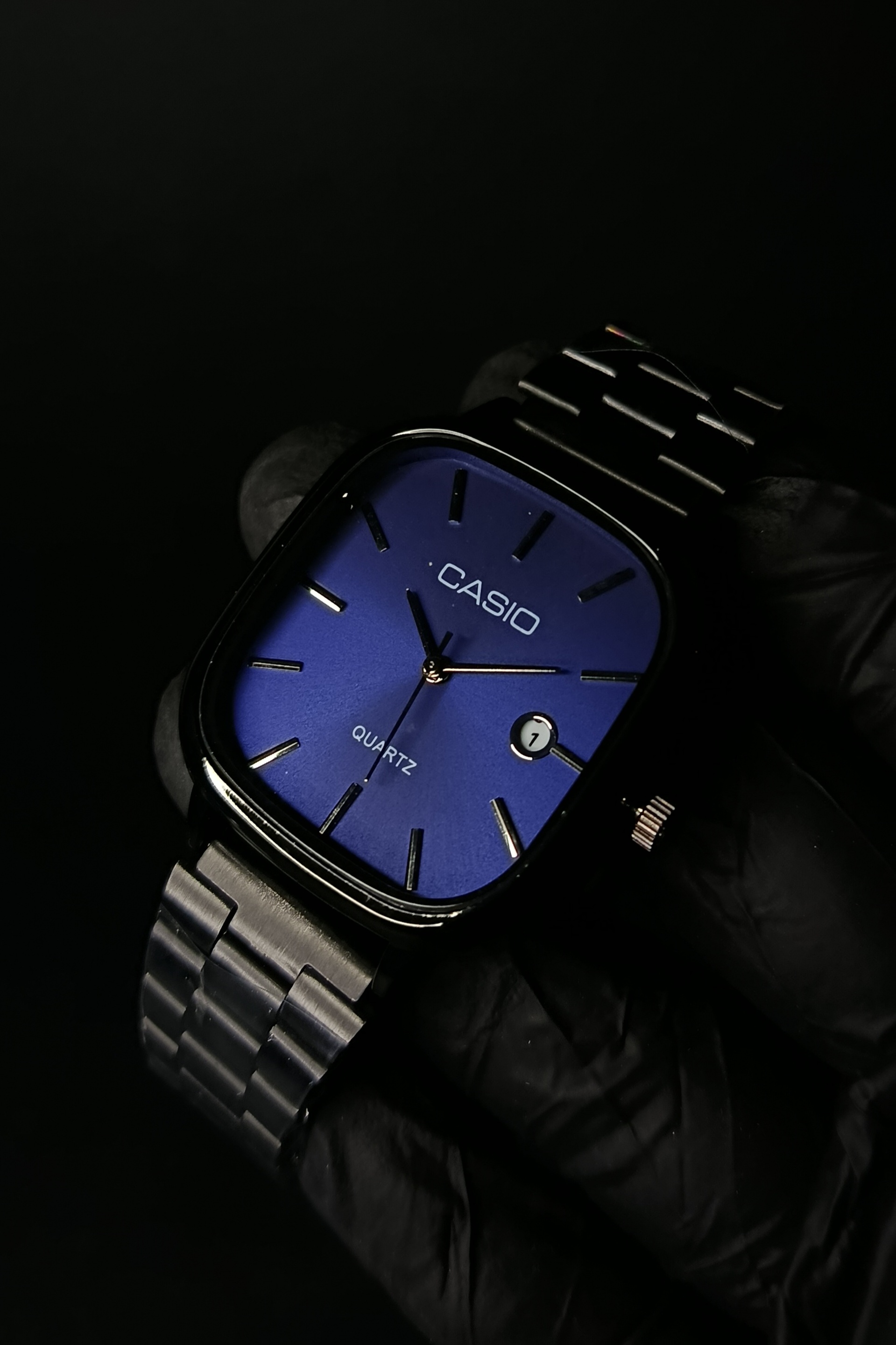 ساعت کاسیو اولدمانی آبی کاربنی بند مشکی
