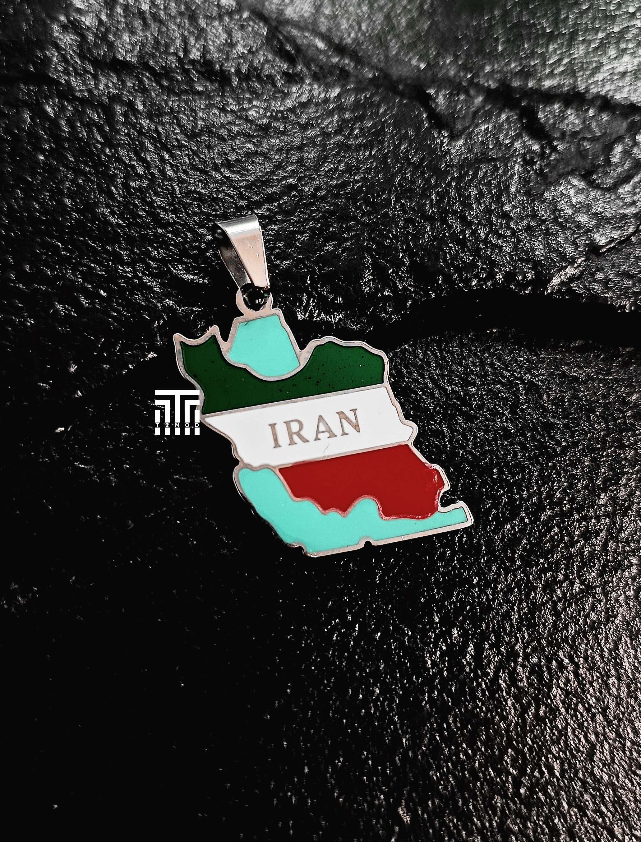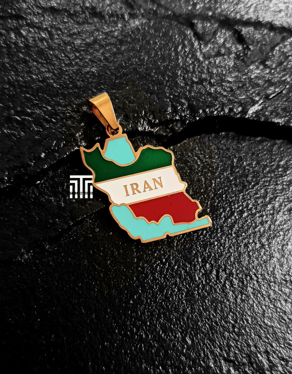 پلاک نقشه ایران با حکاکی IRAN ، در رنگهای طلایی و نقرهای و مشکی |